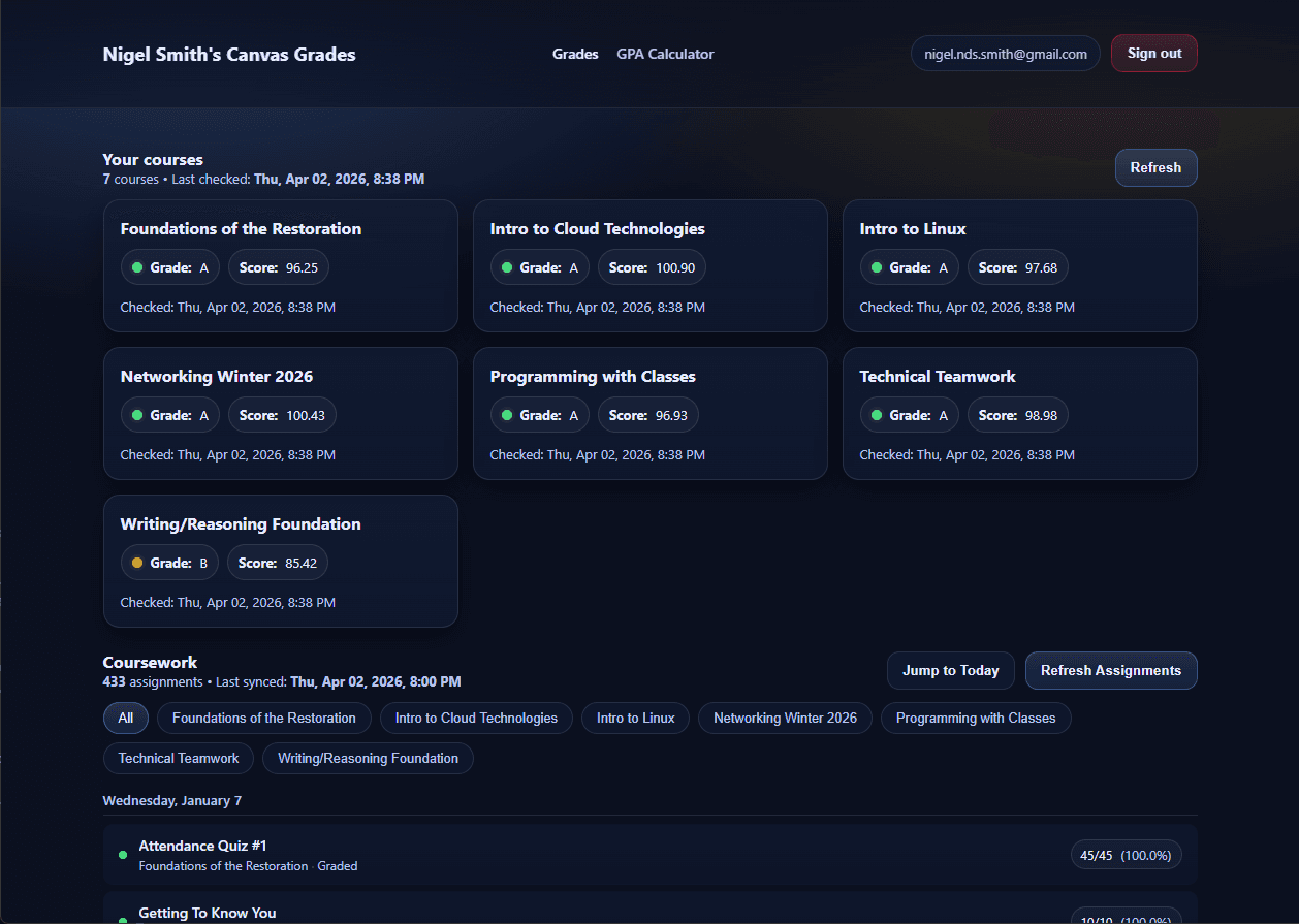 A simple grade calculator to help me calculate my grades using Canvas API.